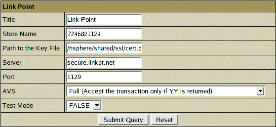 - Store Name: Your LinkPoint unique ID, sometimes also referred to as Config File