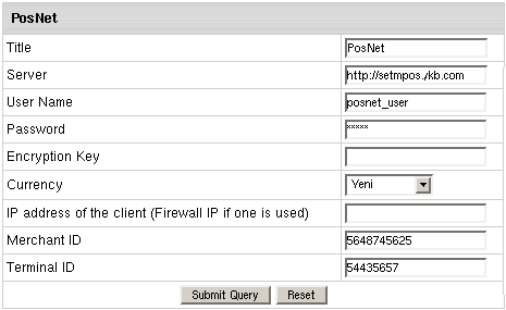 - Merchant ID, Terminal ID: enter, accordingly, 10-digit and 8-digit code given to you by PosNet