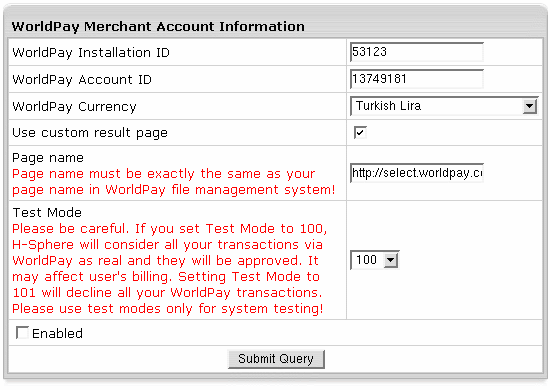 - with variable set to 101, H-Sphere will decline all your WorldPay transactions.