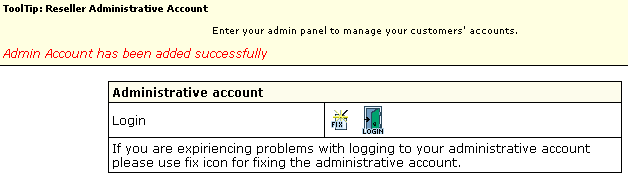 Note: You Cannot Use the Same Reseller Username that you used to get to this point. Create a new one specifically for your Administrative Account.