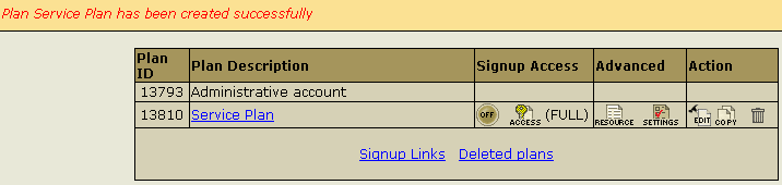 It is always a good idea to leave Signup Access OFF for any plans you create without billing enabled. This will protect you from unauthorized users signing up for your active plans and taking up your valuable reasources. |
