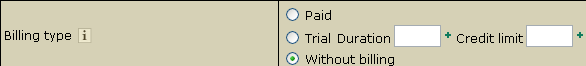 Always set billing to "Without billing", especially on your Service Plan and plans for your own personal or business use. There is no need to set billing features or resource prices until you have your merchant account or gateway configured and setup in H-Sphere to bill your client plans.