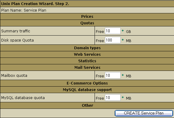 Most Resellers will choose either a Windows or Unix Plan wizard on this step. Choosing either a Windows or Unix plan will allow you to setup your hosting environment based on either operating system, with the benefits (or limitations) of each.