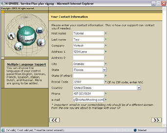 Throughout this tutorial are blue boxes containing useful information regarding the setup of your account. If you are an experienced H-Sphere user or have used this tutorial before, you may skip these extra sections. |