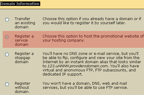 If you do not choose the "Register A Service Domain" option, your account will not function properly and will not be setup as your Service Domain.