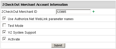 - 2CheckOut Merchant ID: your ID provided to you by 2CheckOut.