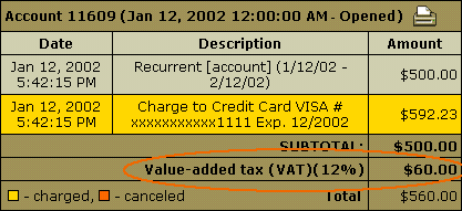 added to the SUBTOTAL of the user invoice based on the tax value.