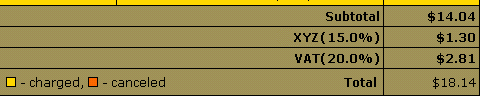 The SUBTOTAL is $14.04, the 15% XYZ tax makes up $1.30, and
