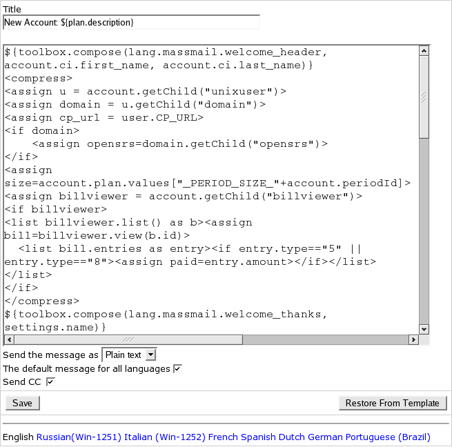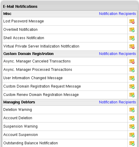 Starting with version 2.4, master admin and resellers can edit e-mail notifications