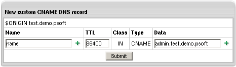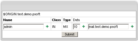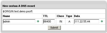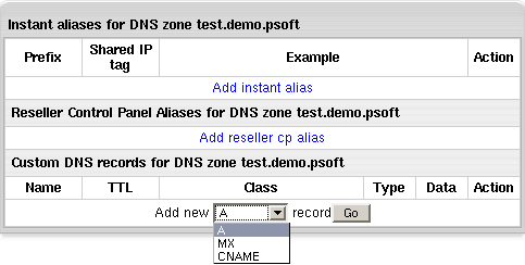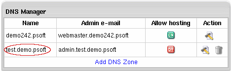 - Click the Edit icon near the chosen DNS zone. A page similar to this will appear: