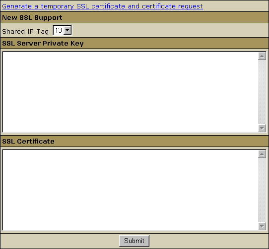 To install a shared SSL certificate:
