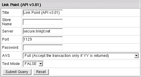 - Store Name: Your LinkPoint (API) unique ID, sometimes also referred to as Config File