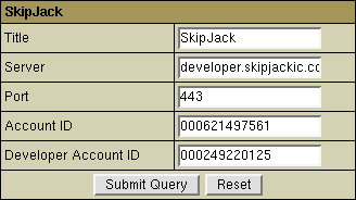 - Developer Account ID: the ID you are given when you sign up for a trial SkipJack account