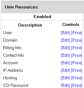 - Click the Edit link to configure basic settings for resources: