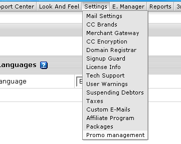- Select Promo Management in the Settings menu: