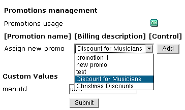 In H-Sphere 2.4 beta 6 and higher, you can offer promotions (flexible discount