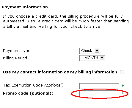 on the Payment Information page of the signup wizard: