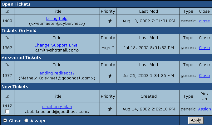 from the main queue. To mass close/assign selected tickets, do the following: