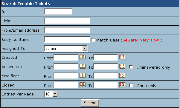 Searching Trouble Tickets.