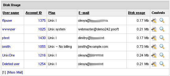 - Usage Type: overall disk usage or disk space consumed on specific (mail, web, DB) server.