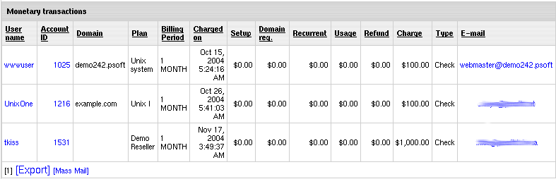 The Export link enables you to save monetary transaction statistics in the *.csv format that is supported by numerous