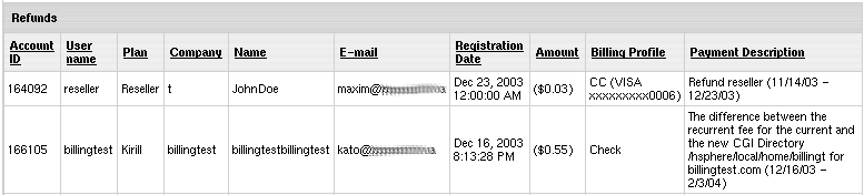This report allows getting information on all refunds addressed to your users by refund description, billing profile, amount etc.