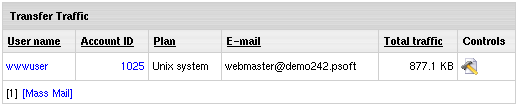 - Transfer Traffic shows how much traffic was used during certain period of time.