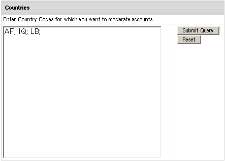 In the above example, all accounts from the countries specified in the blacklist