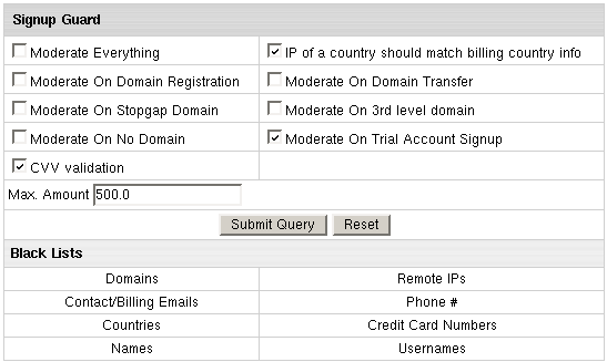 - On the Signup Guard page, in the Black Lists section,