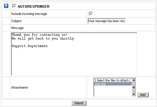 - H-Sphere 2.4.2: You can add attachments to your autoresponder, for instance your corporate logo.
