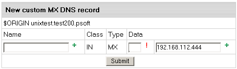 If you have selected MX record, the following page appears: