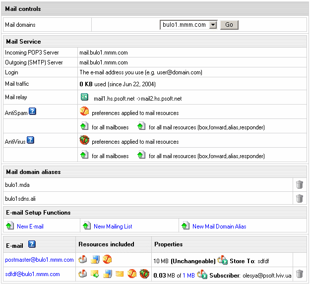 - Mail domains: a mail domain whose mail resources you can manage and view on the mail domain controls page.