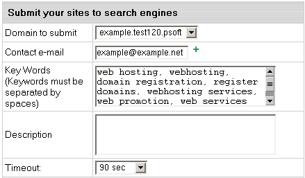 On the page that appears, check the engines to register the site with and fill in the following fields: