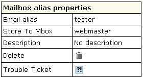 The Mail Domain Aliases section will list all the current mail domain aliases for this mail domain: