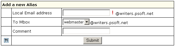 - In the To Mbox field select the local mailbox you are creating the alias for.