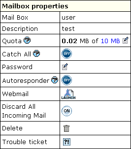 - Trouble Ticket: report troubles with the mailbox.