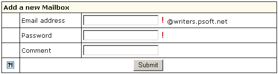 - Enter the name and password for the new mailbox and click Submit: