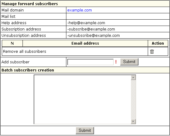 subscribers at once, enter their e-mail addresses separated with line break