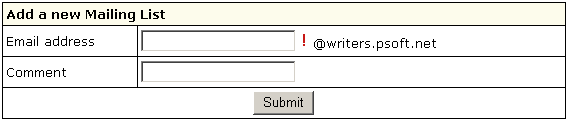 - Create the mailing list using the form that appears: