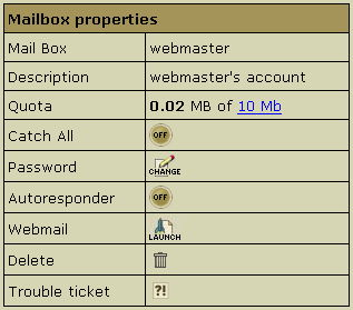 - Trouble Ticket: report troubles with the mailbox.